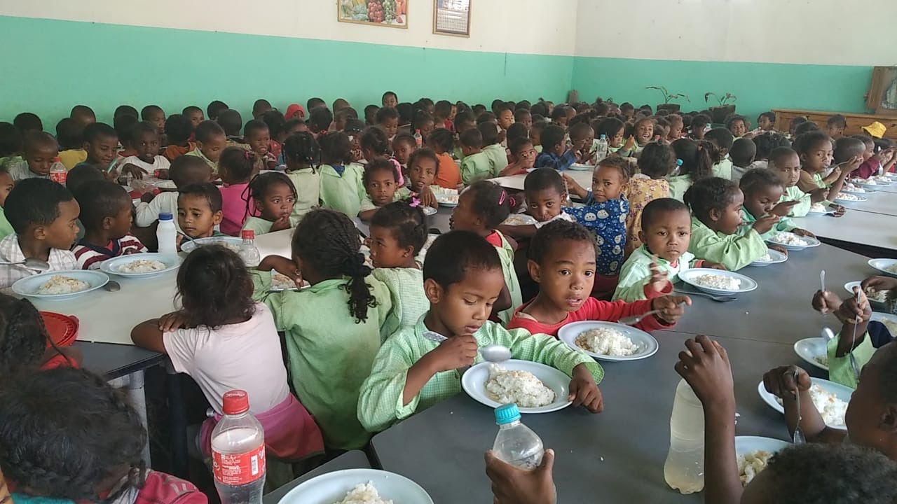 A Akamasoa, nous « montons un peu de standard », parce que les gens peuvent aller à l’école, se soigner, peuvent manger à leur faim. Mais tout autour de nous, et nous devons aider tout le monde, parce que nous avons presque 20’000 élèves, plus précisément 19’593 élèves dans nos écoles. 11’500 parmi ces élèves mangent chaque jour dans nos cantines. C’est un défi incroyable et cela fera 35 ans en 2024, que nous avons commencé Akamasoa.